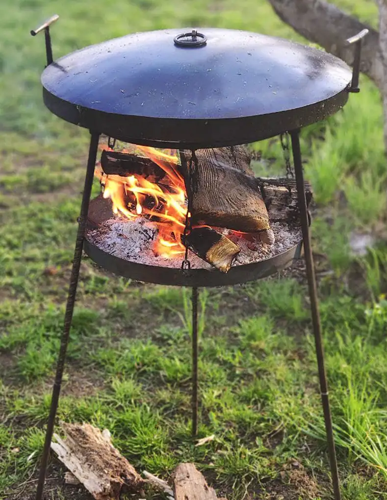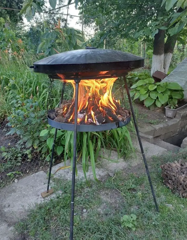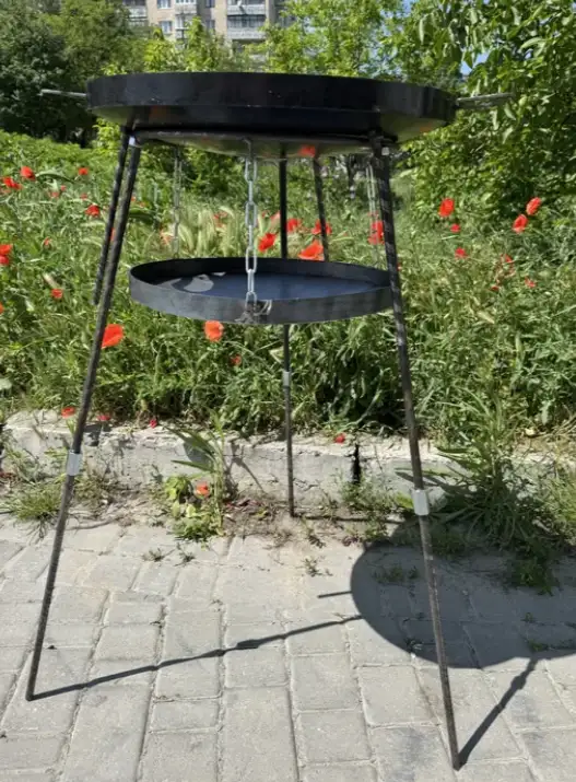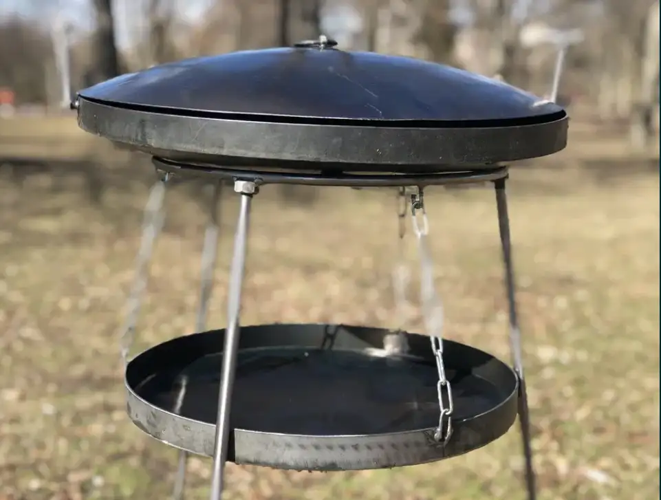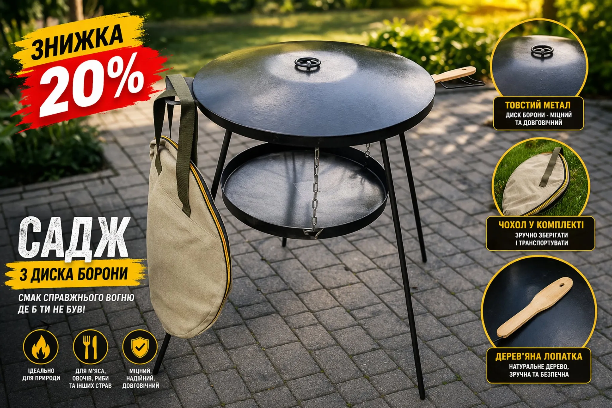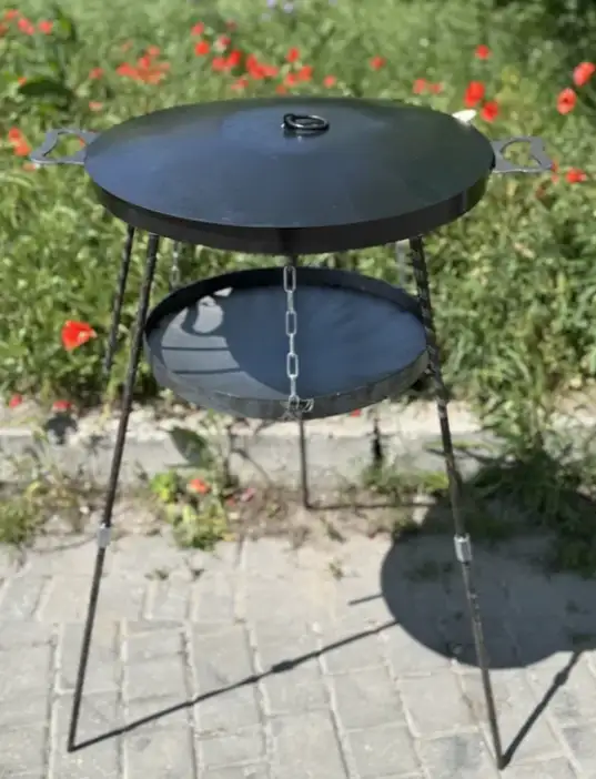 Садж ідеально підходить для приготування на природі, дачі чи у дворі — встановлюється за хвилину та готовий до роботи.